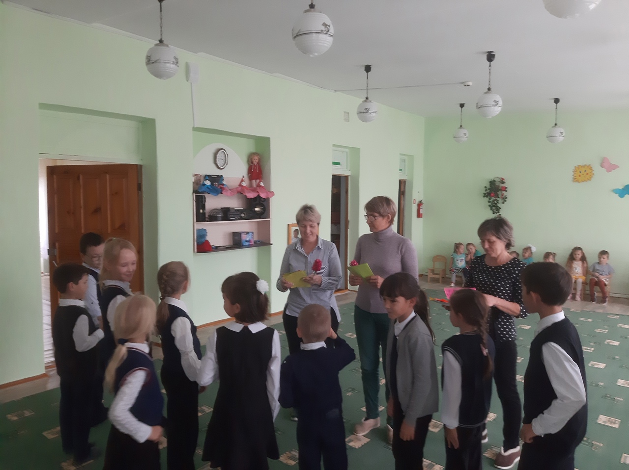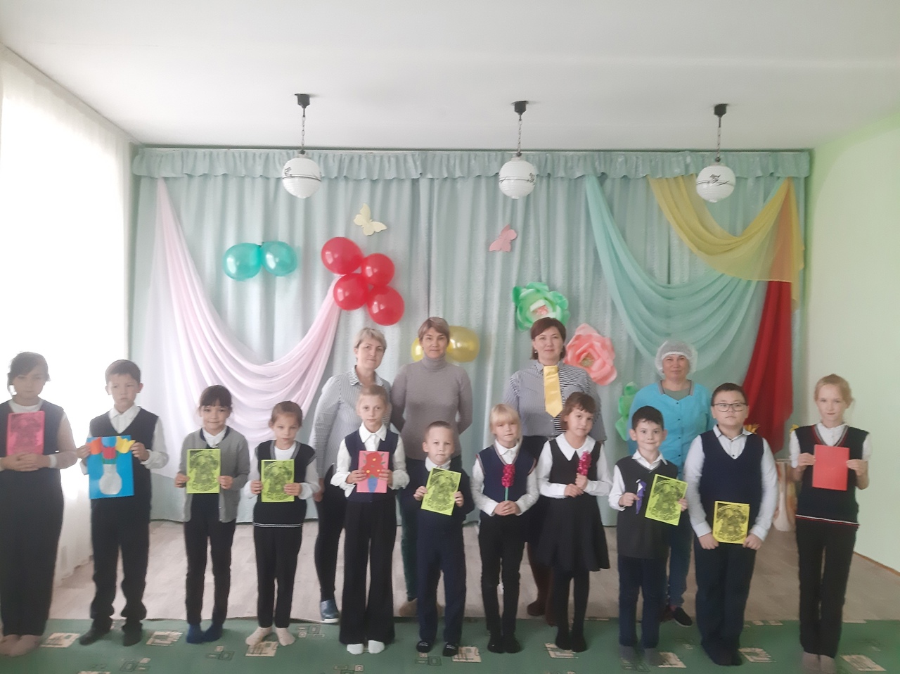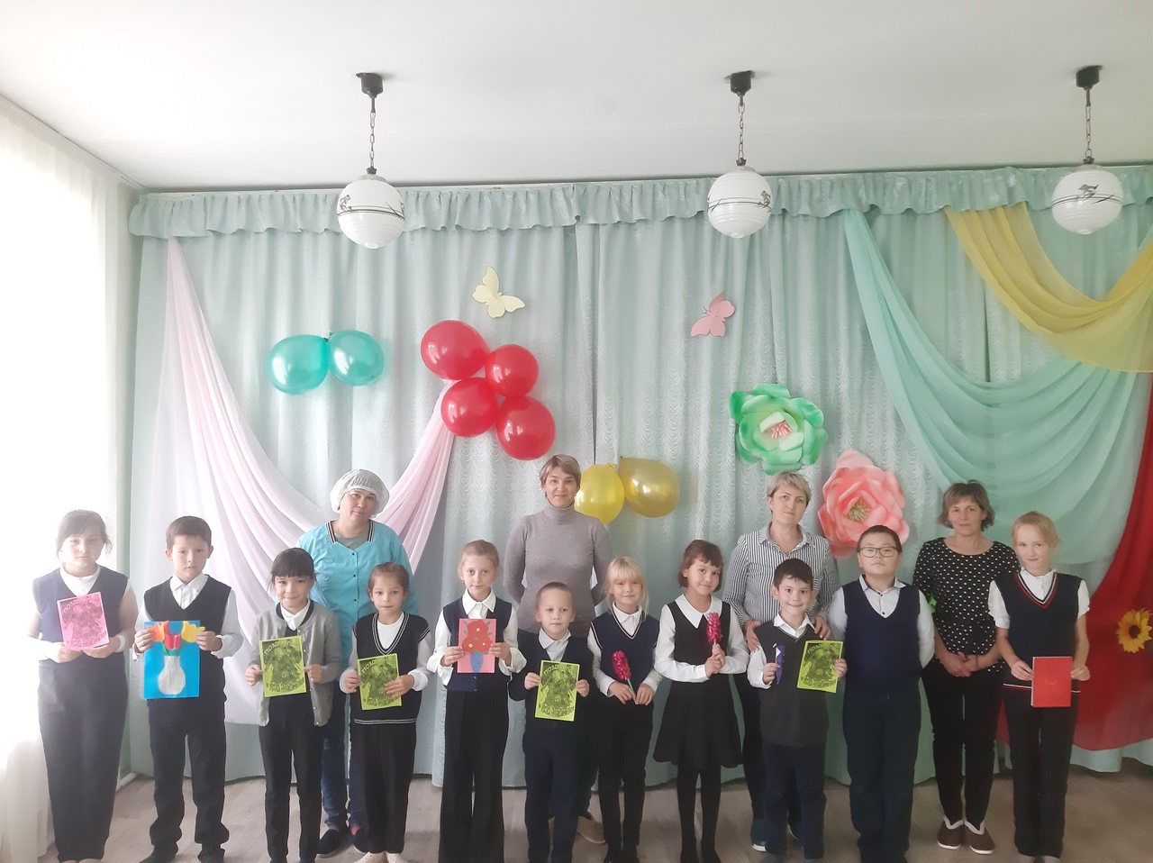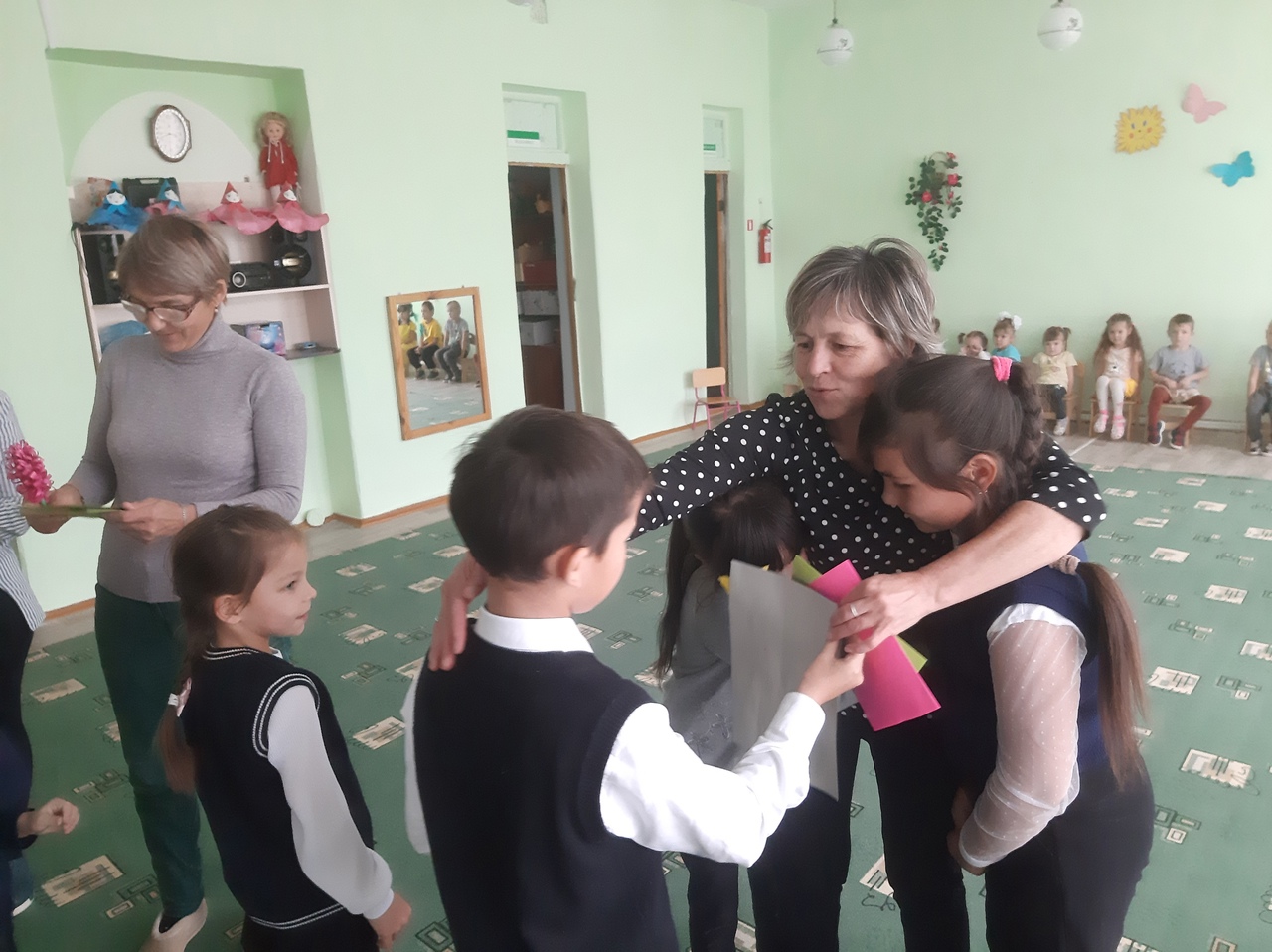 в МБДОУ д/с «Солнышко» с.Первомайское советник по воспитательной работе - Соколова А.Ф. вместе с ребятами начальных классов поздравили всех сотрудников детского сада с профессиональным праздником.
