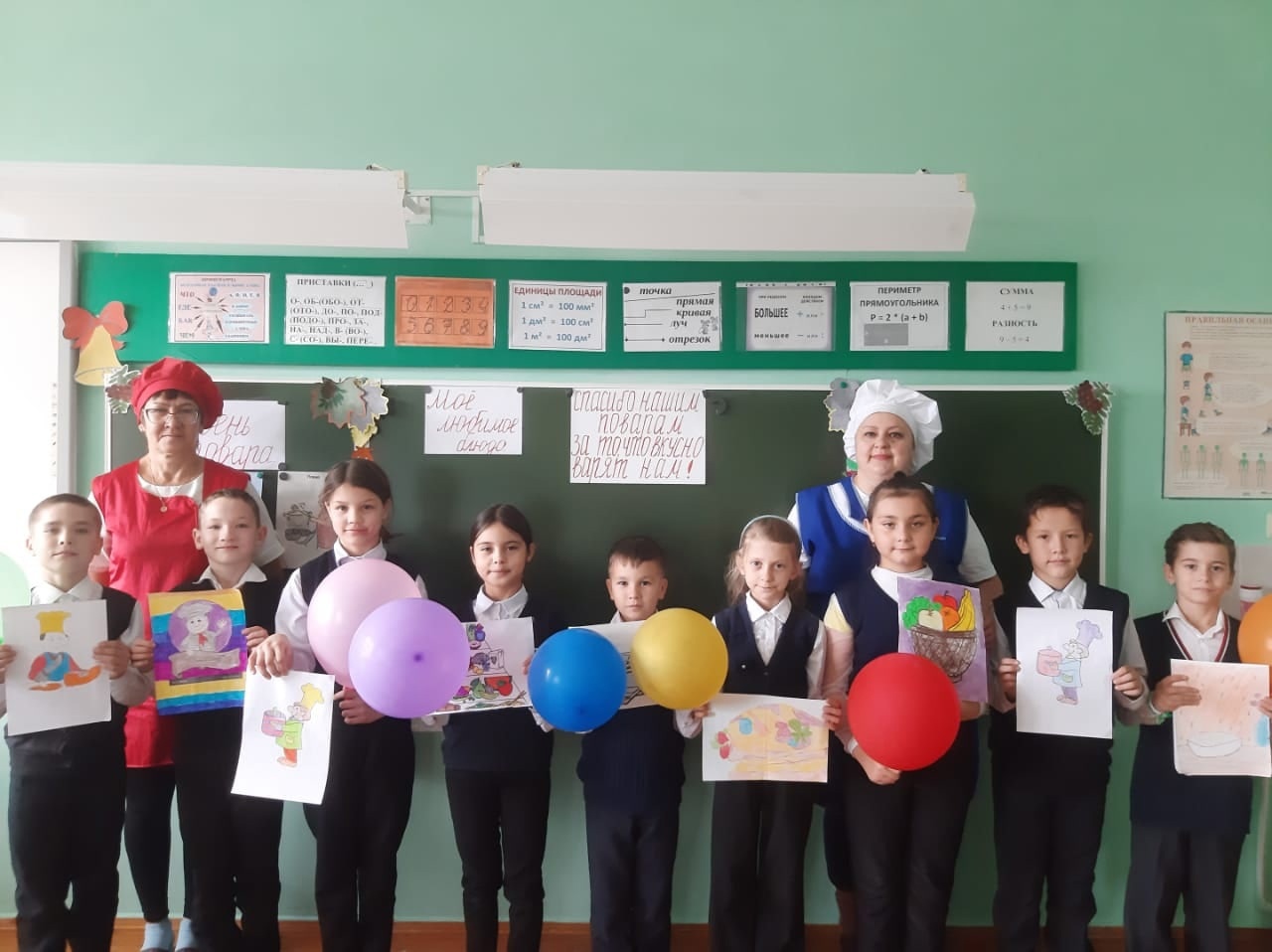 Учащиеся 3 класса МОБУ СОШ с.Первомайское приняли участие в акции конкурс рисунков «Мое любимое блюдо», а также подготовили поздравления нашим любимым поварам.