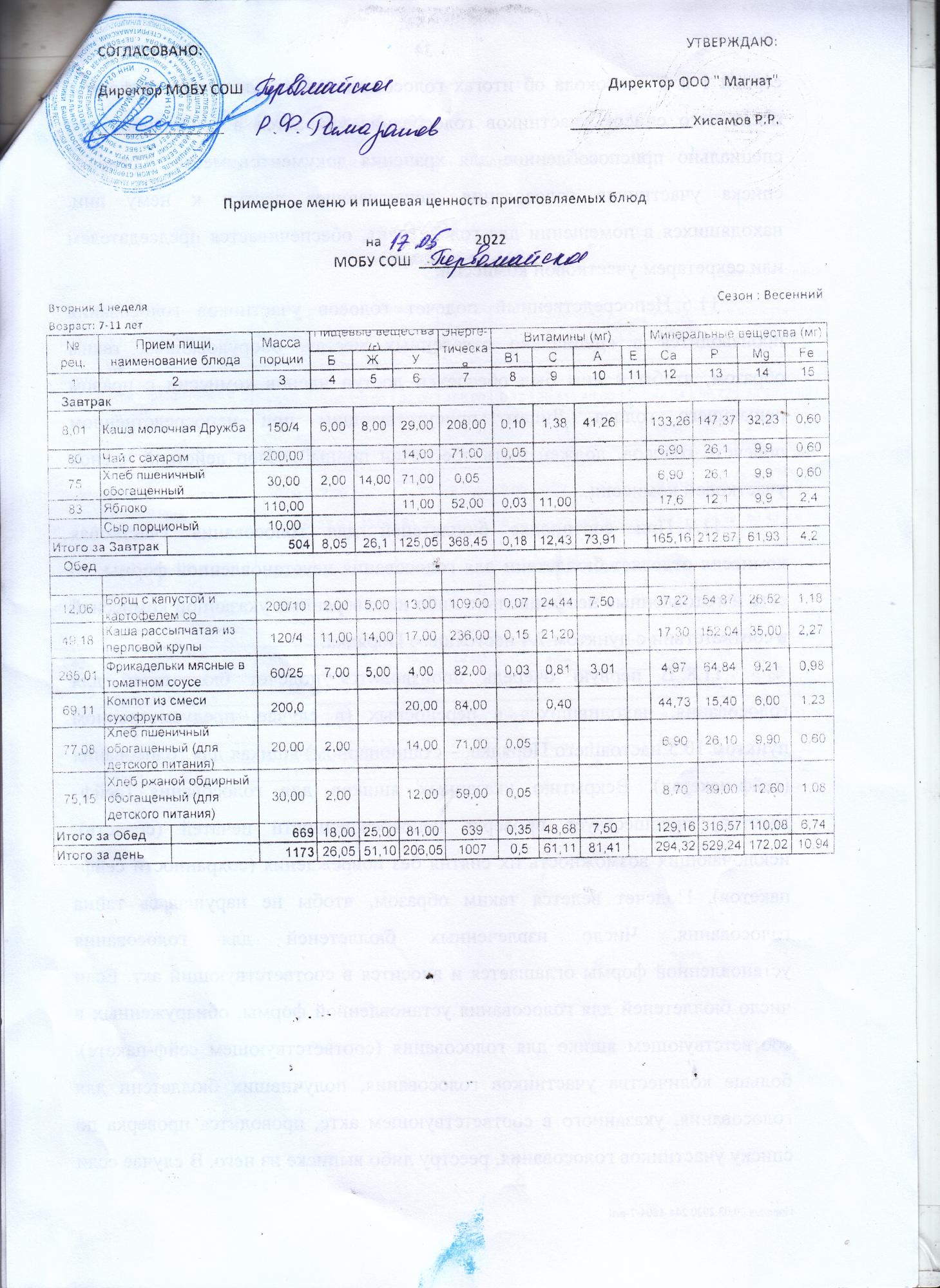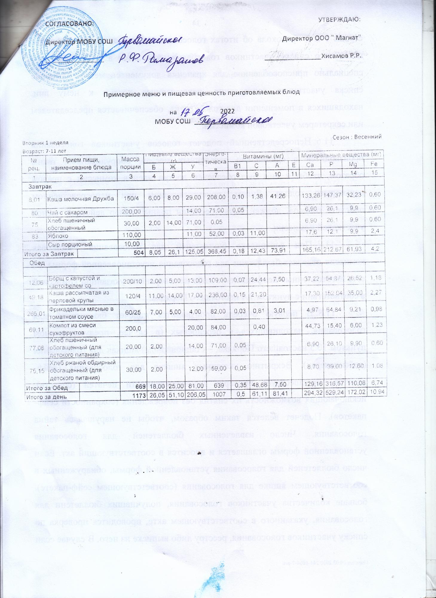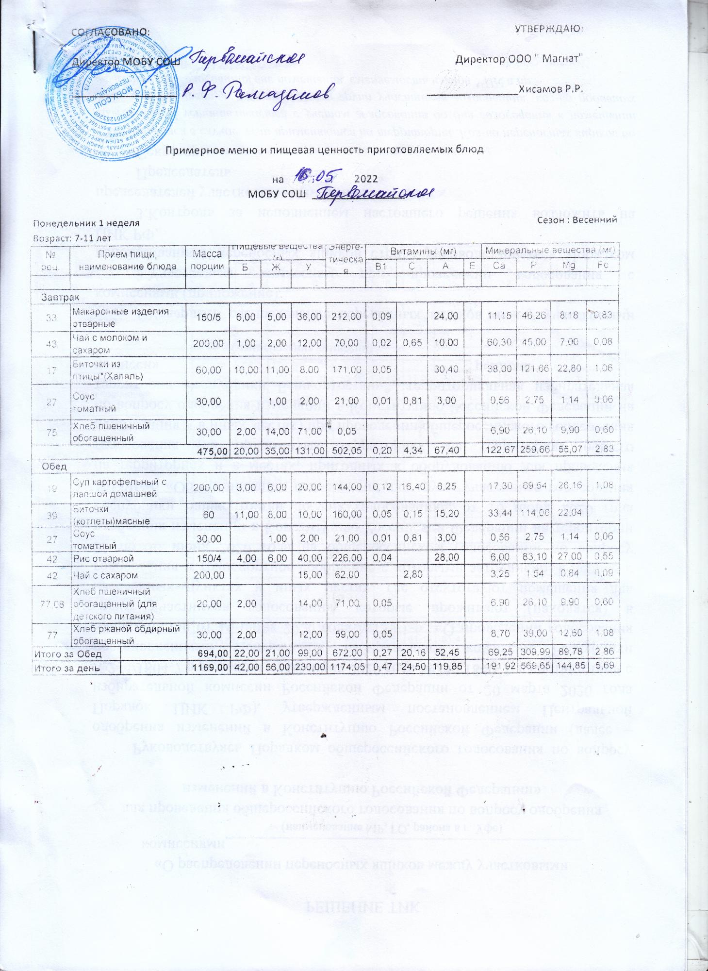 (Контрольные блюда)