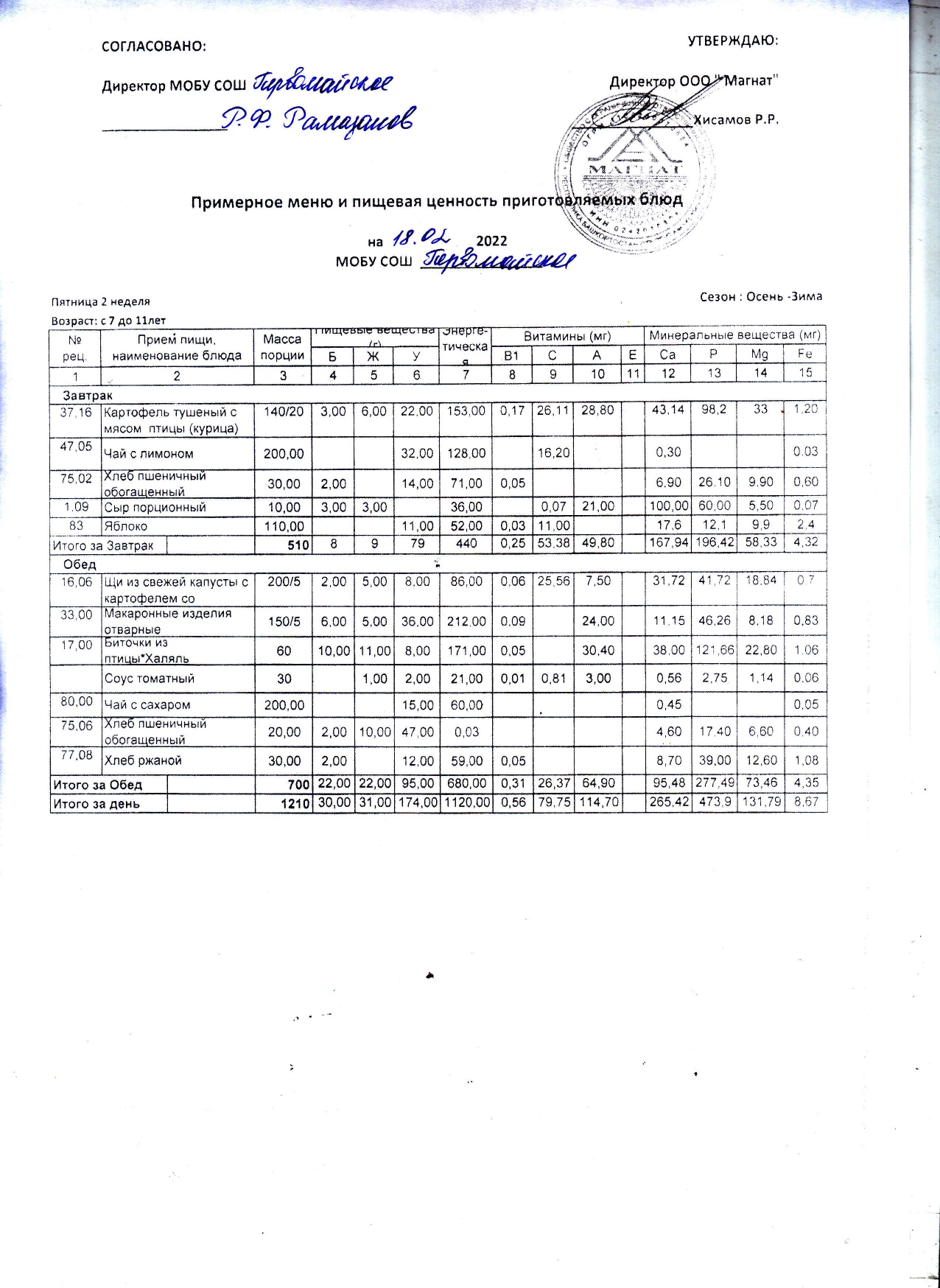 (Контрольное блюдо)