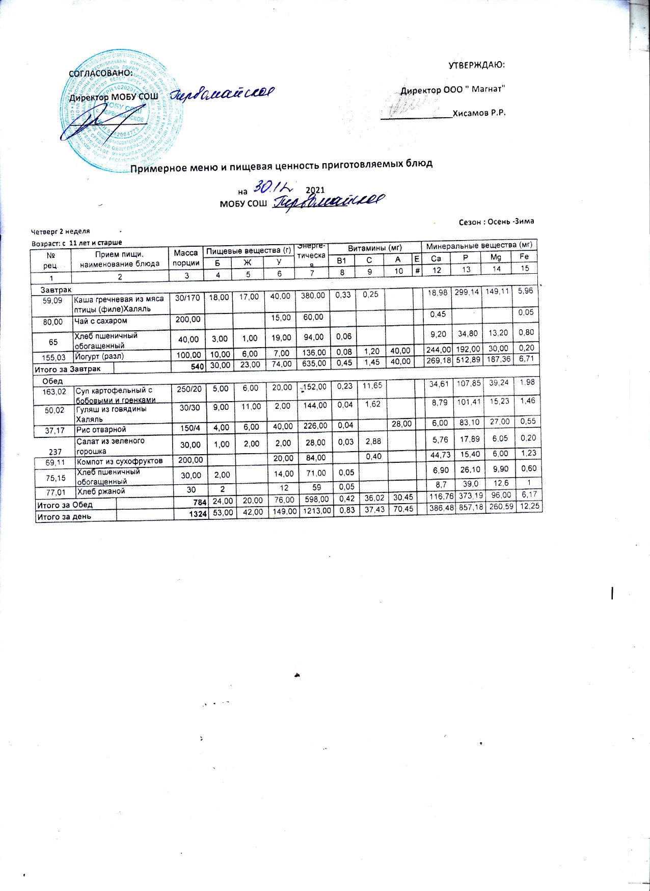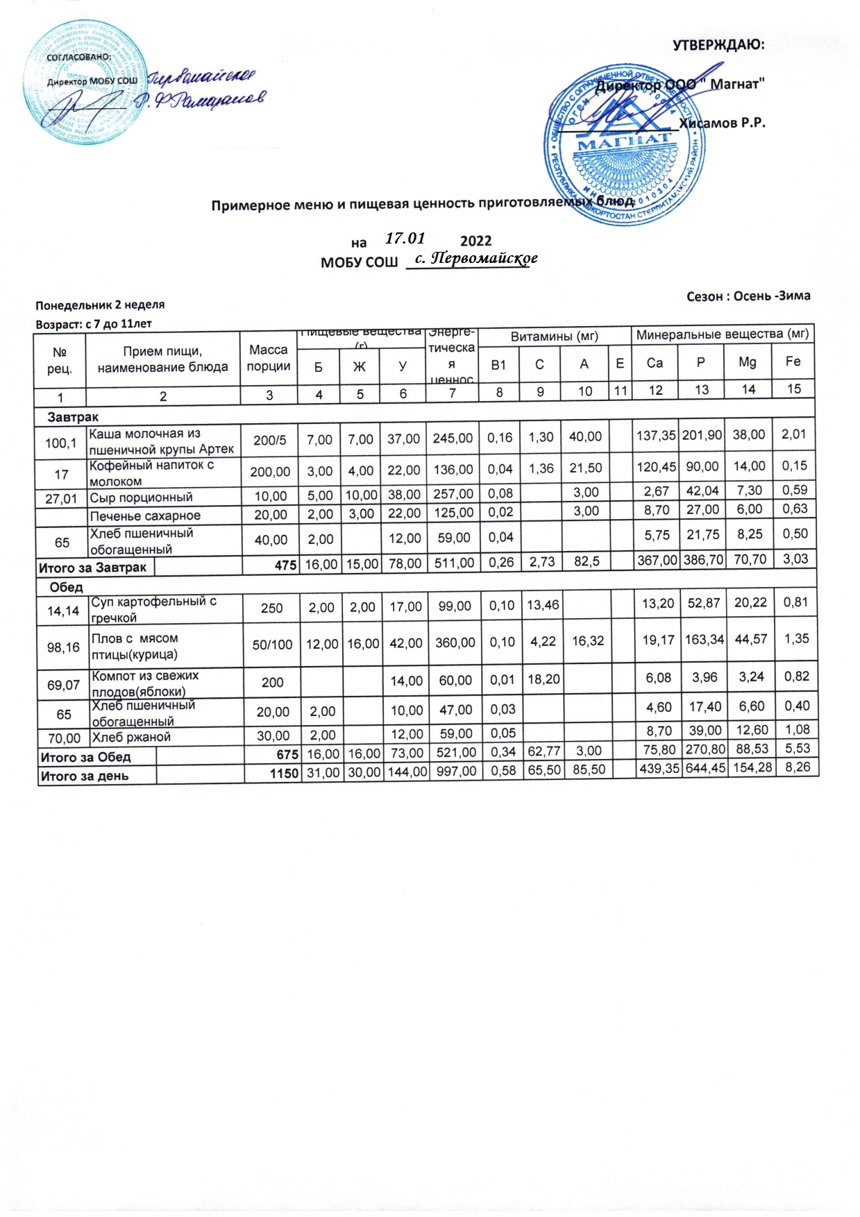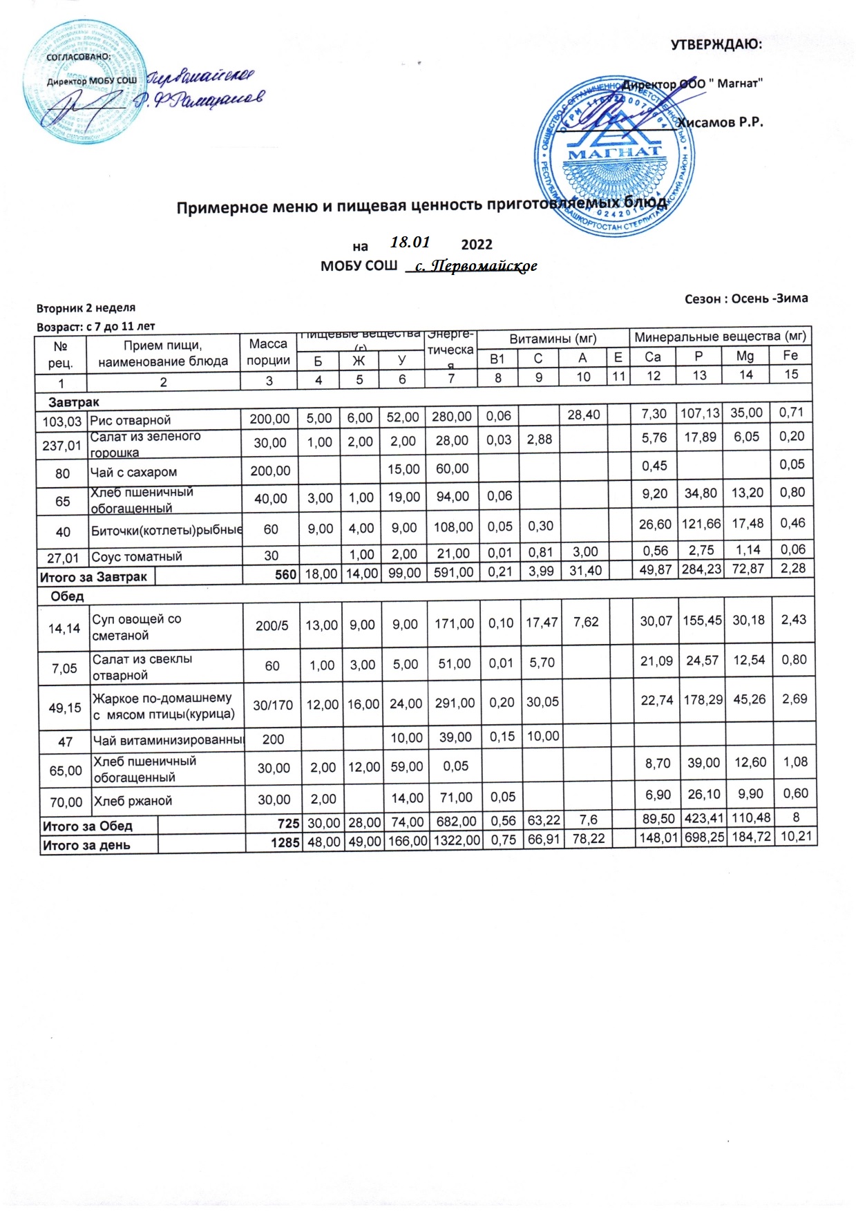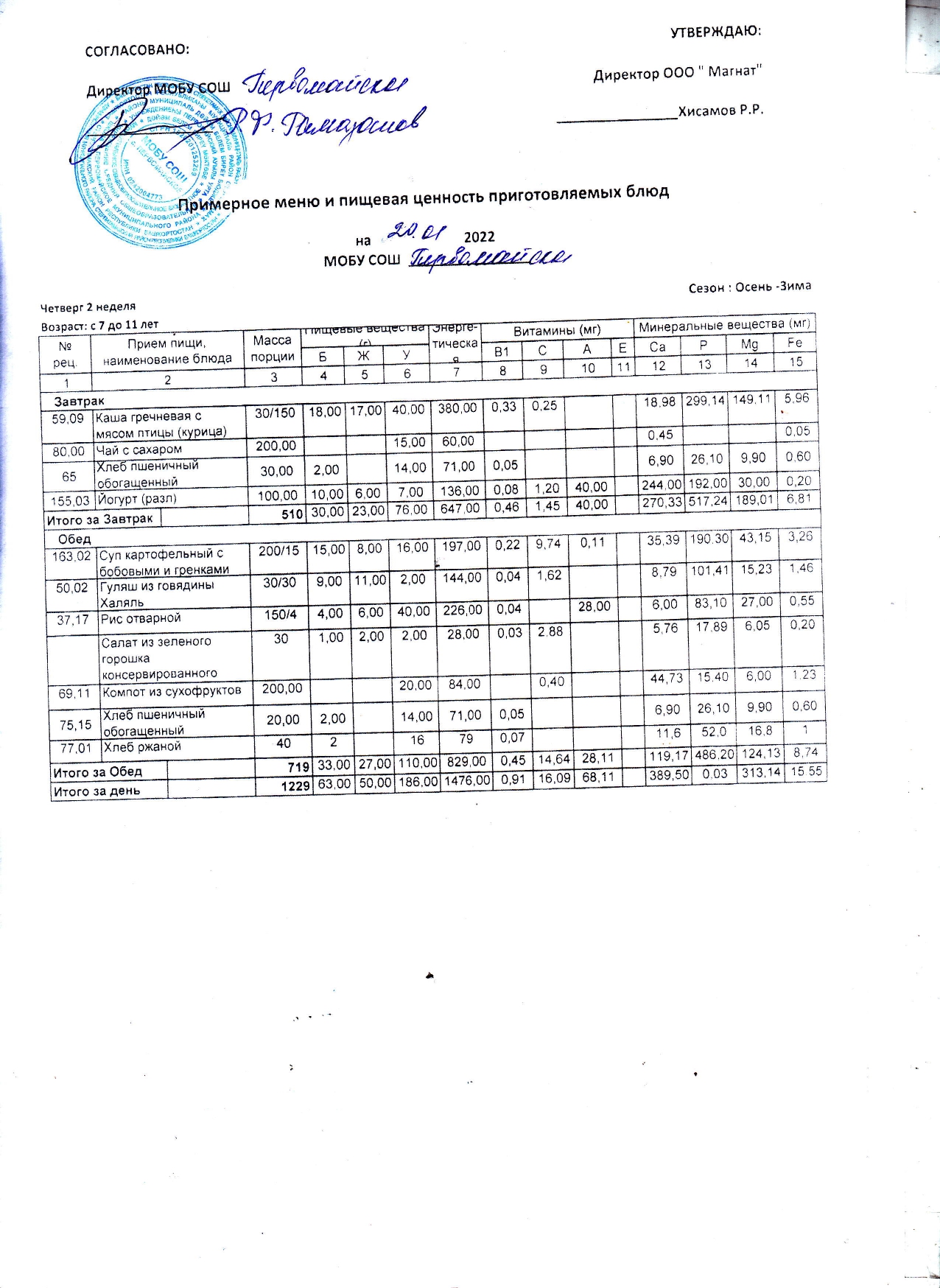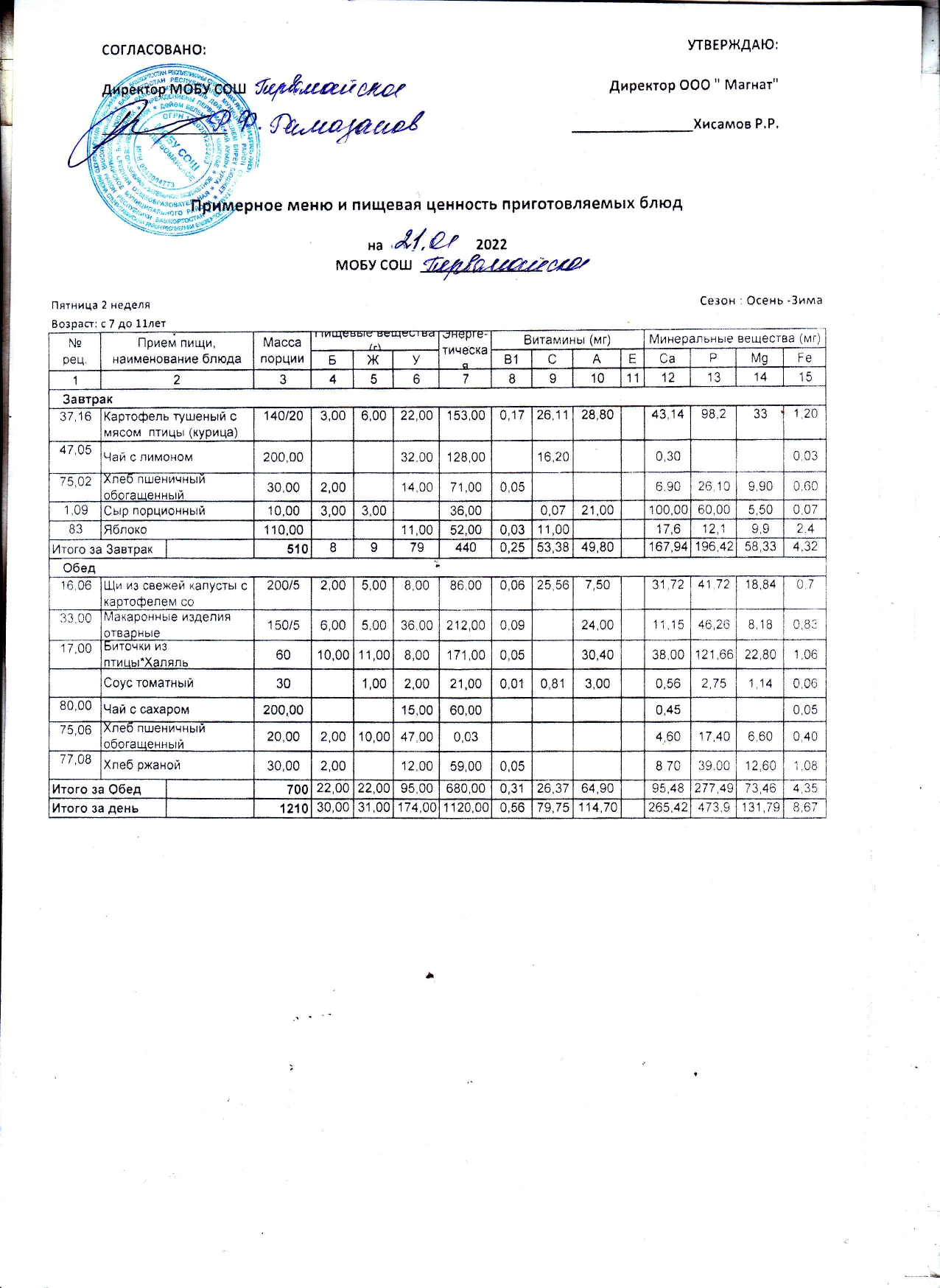 (Контрольные блюда)