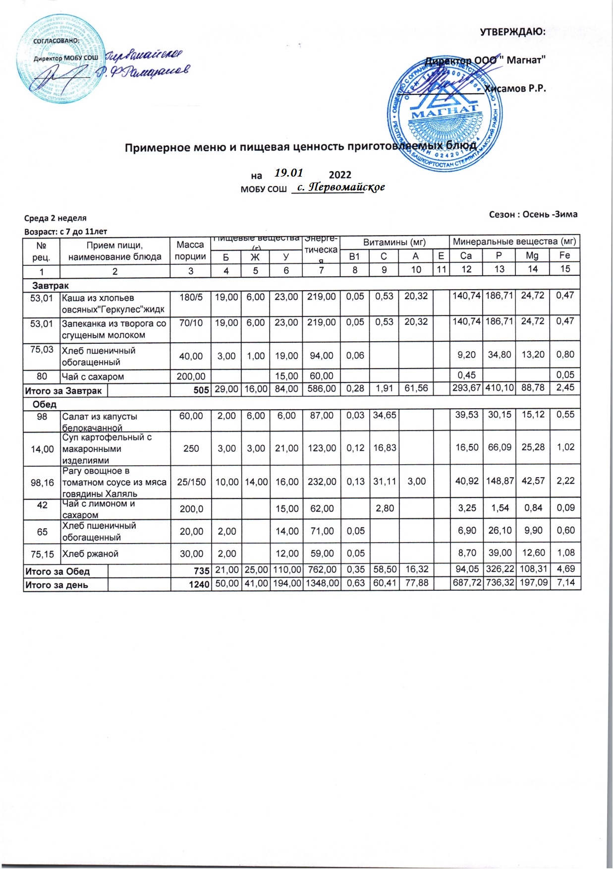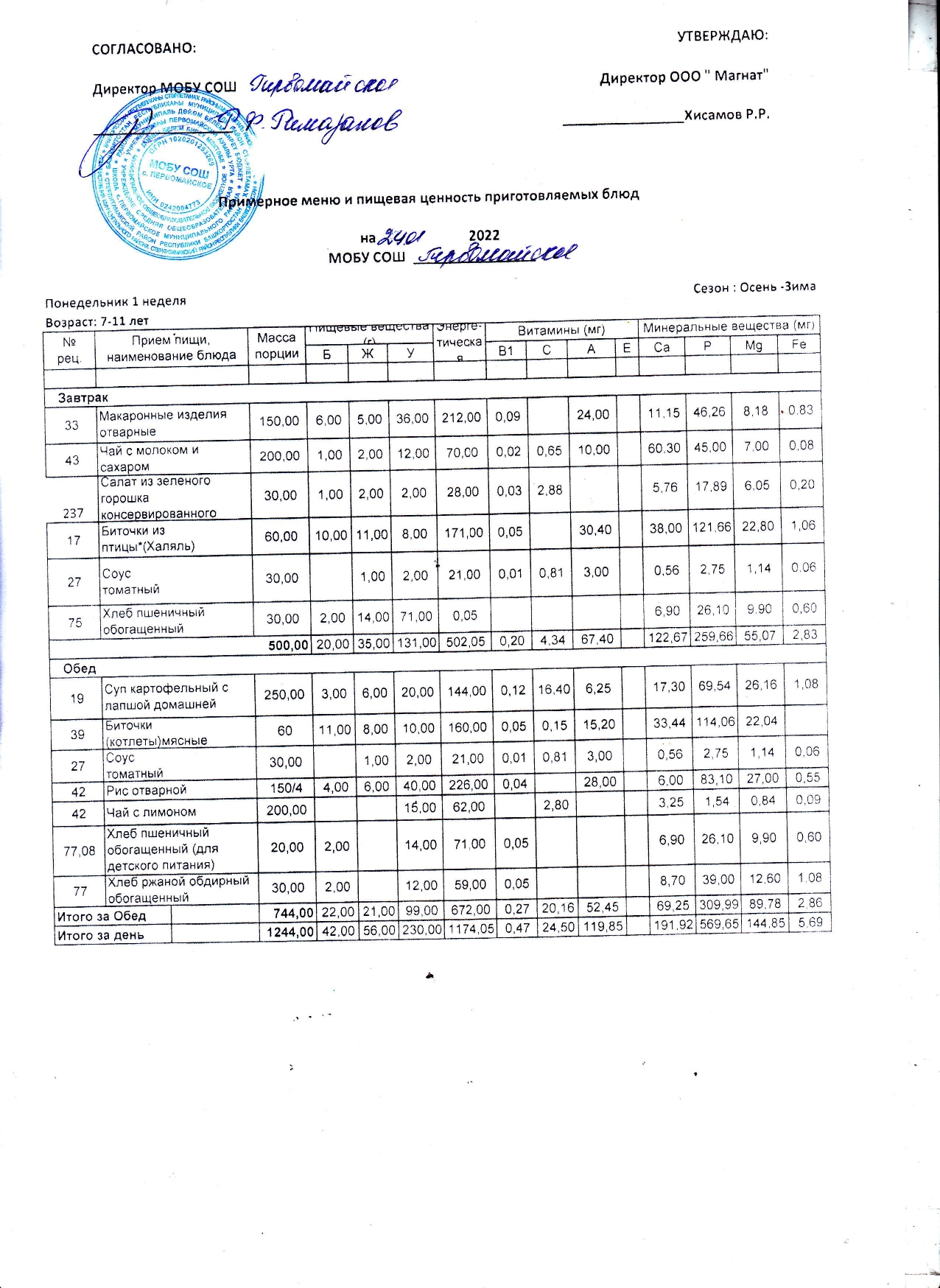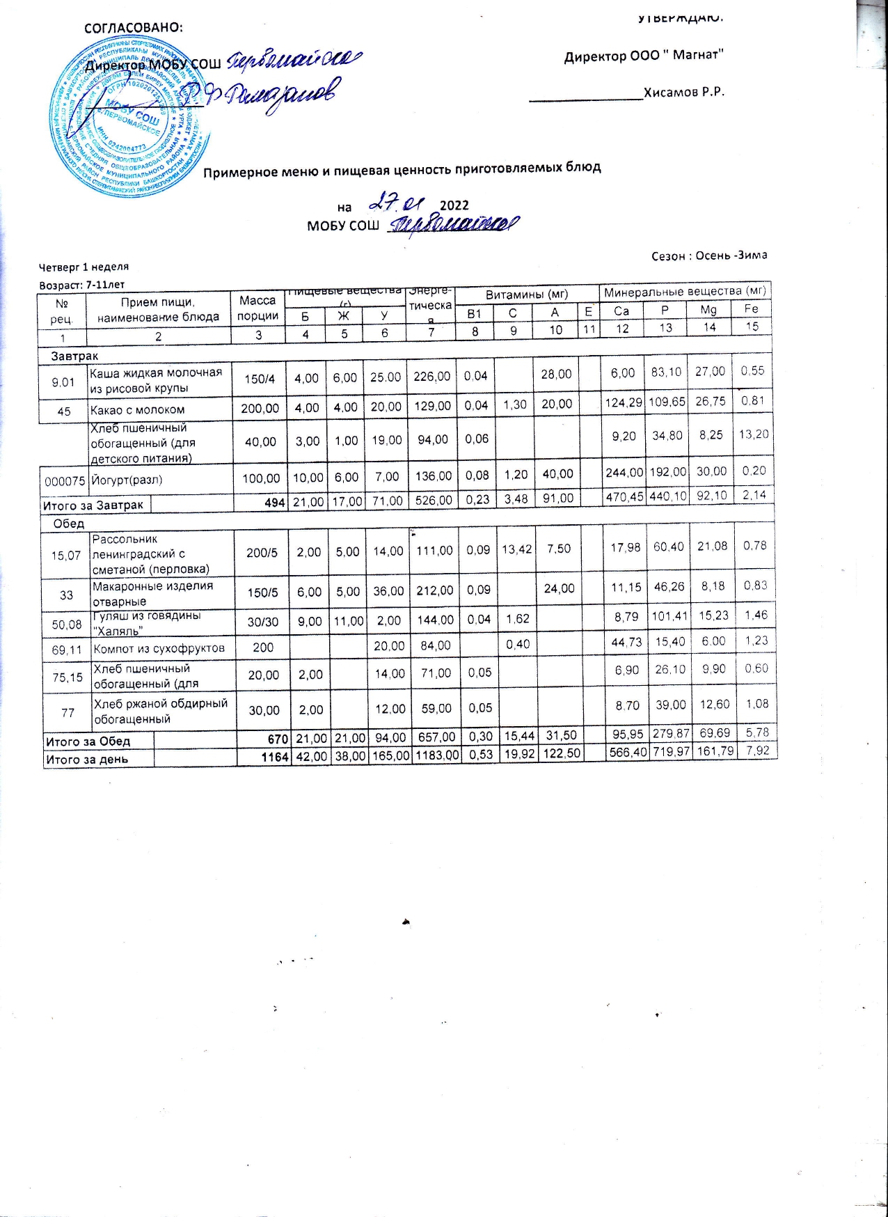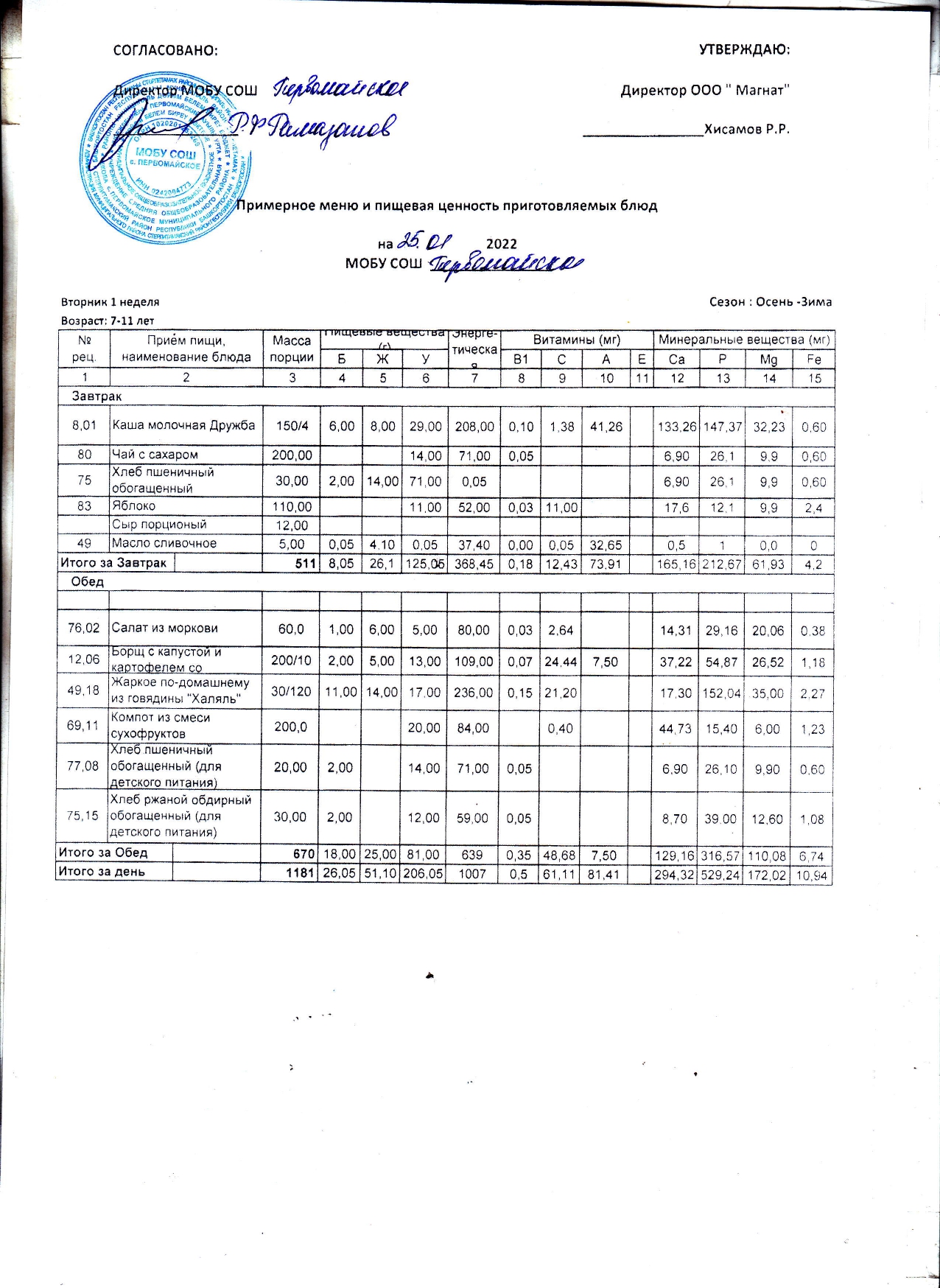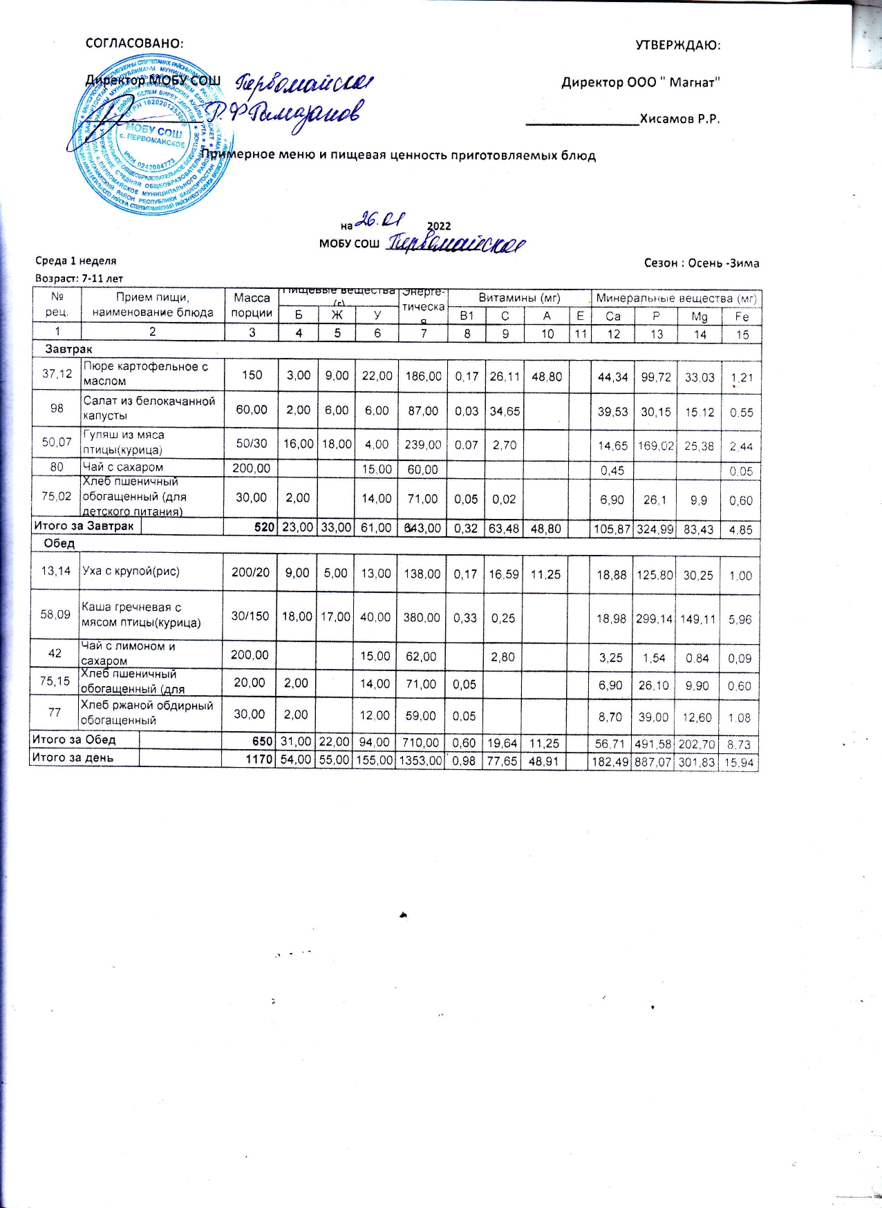 (Контрольные блюда)