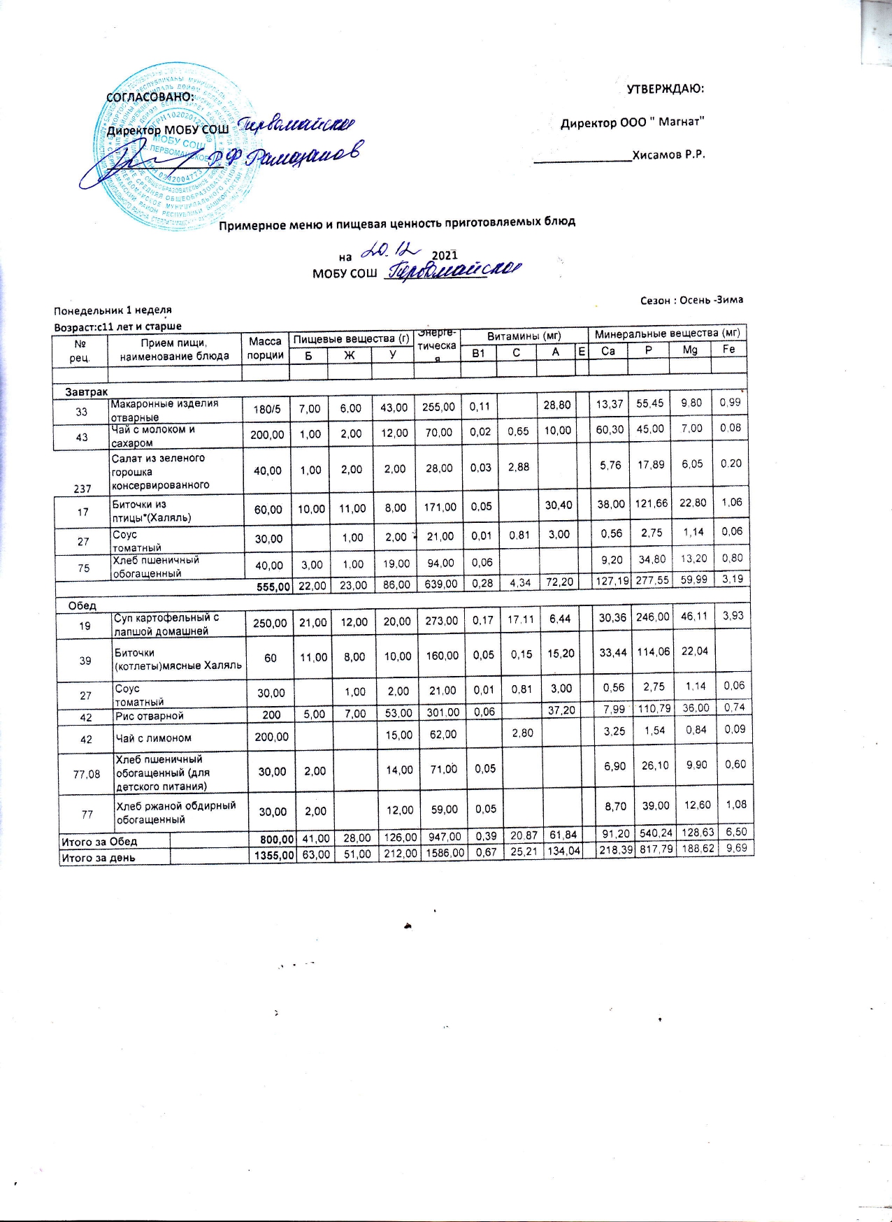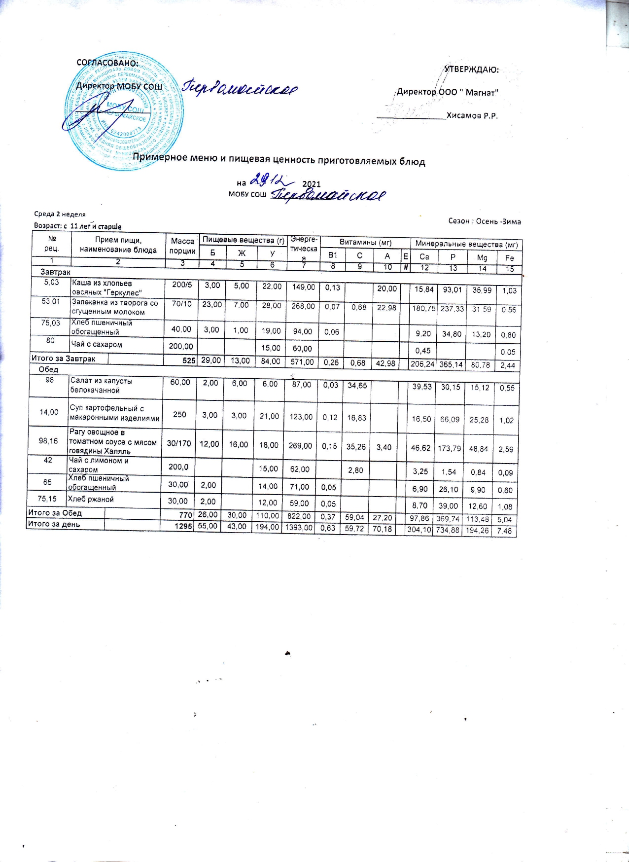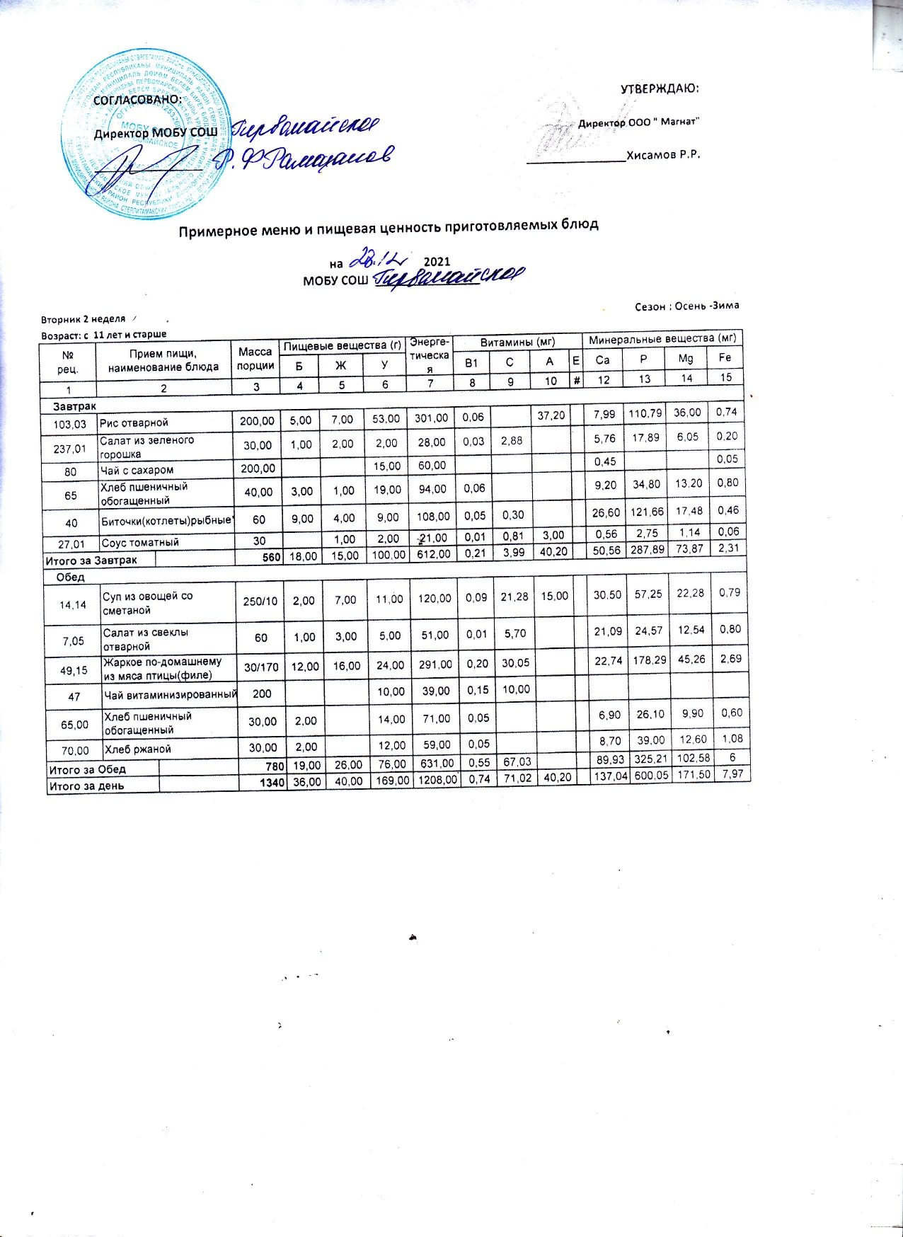 (Контрольное блюдо)