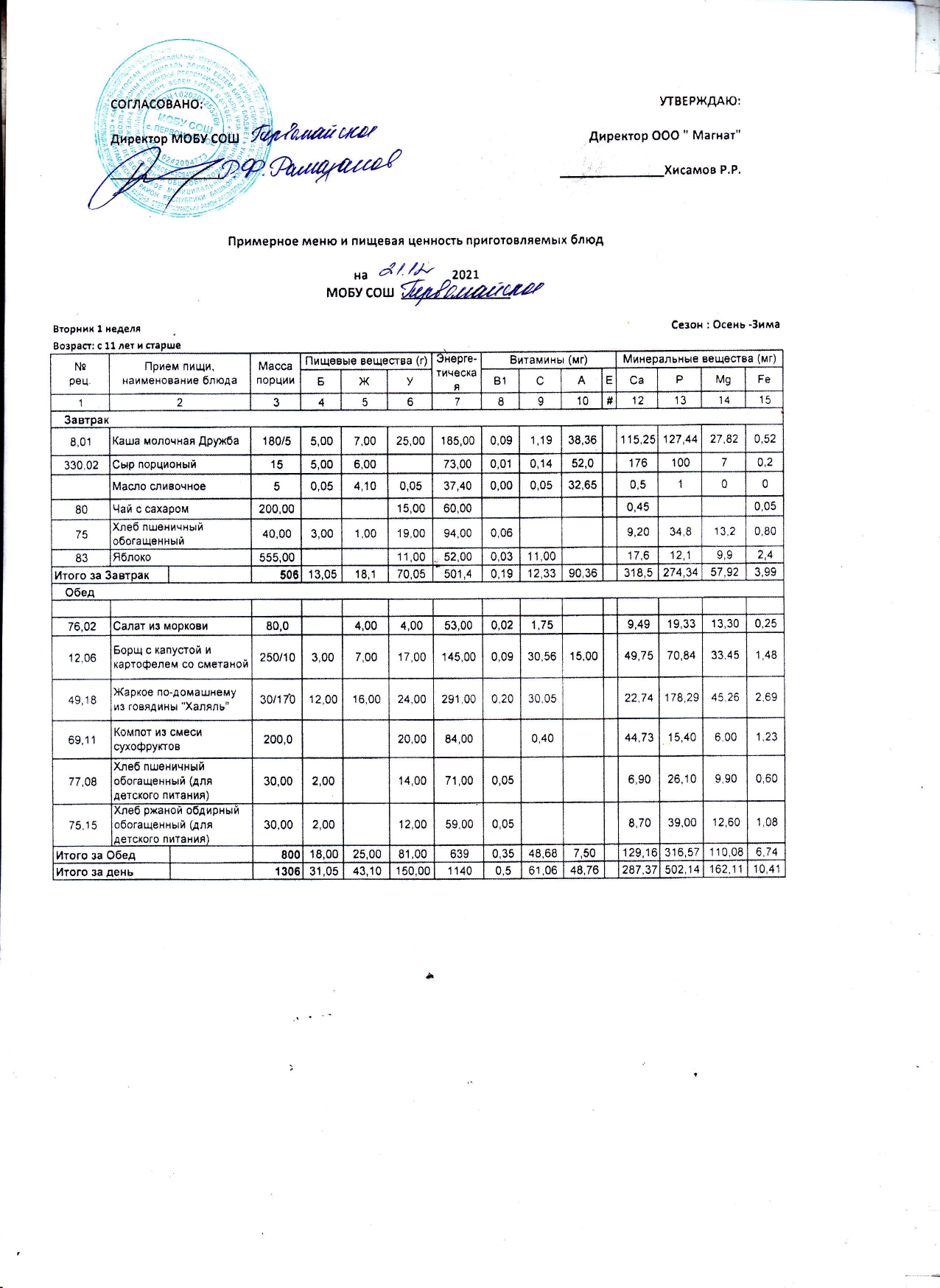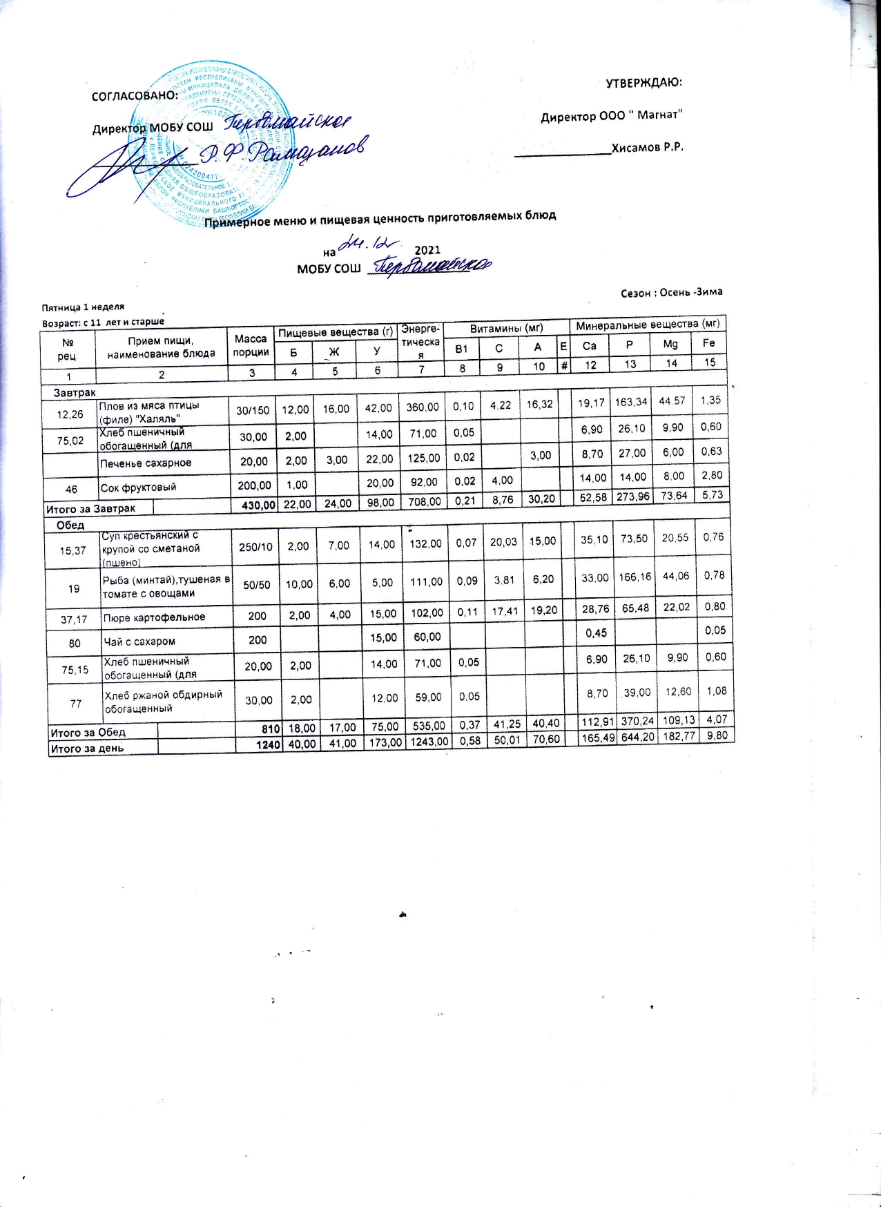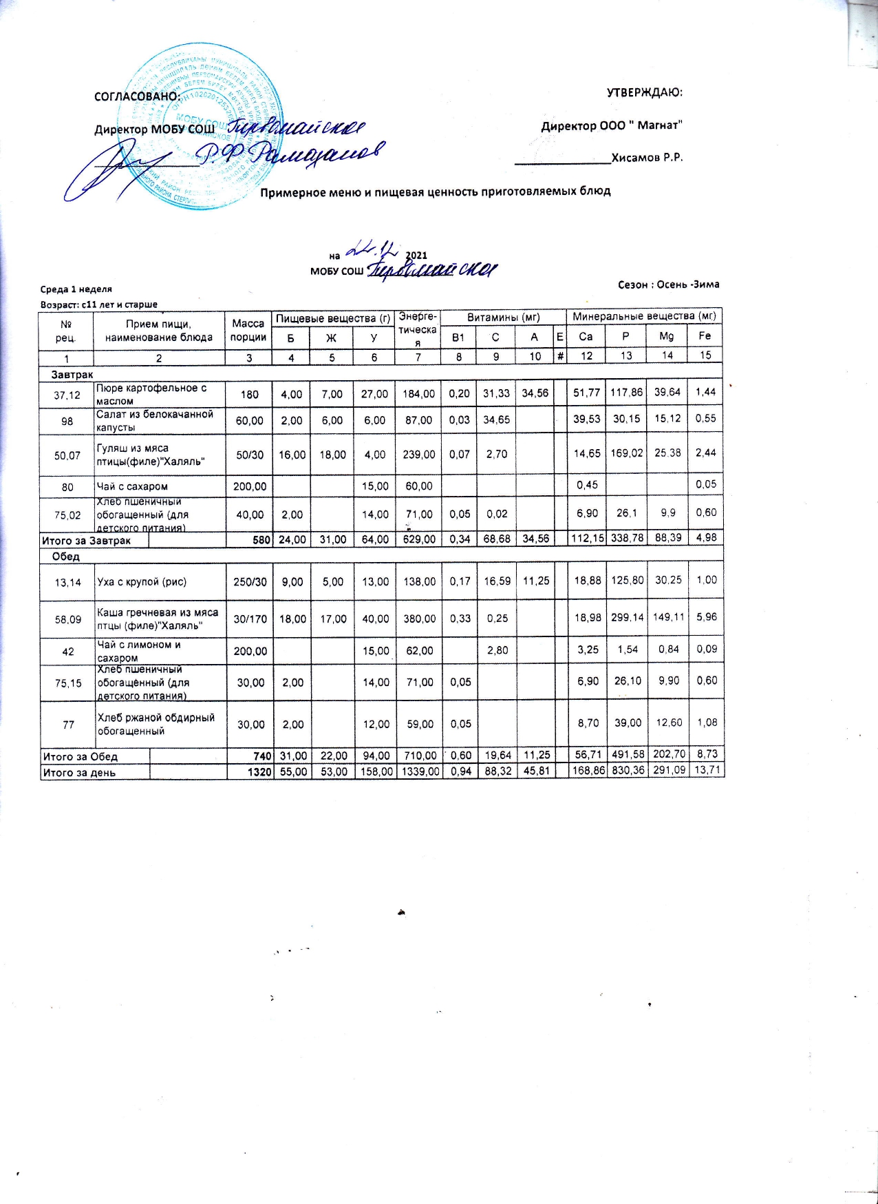 (Контрольное блюдо)