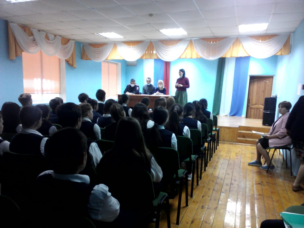 Сегодня в школе была организована и проведена встреча школьников с представителями отдела образования, службы опеки и попечительства, ОМВД России по Стерлитамакскому району.