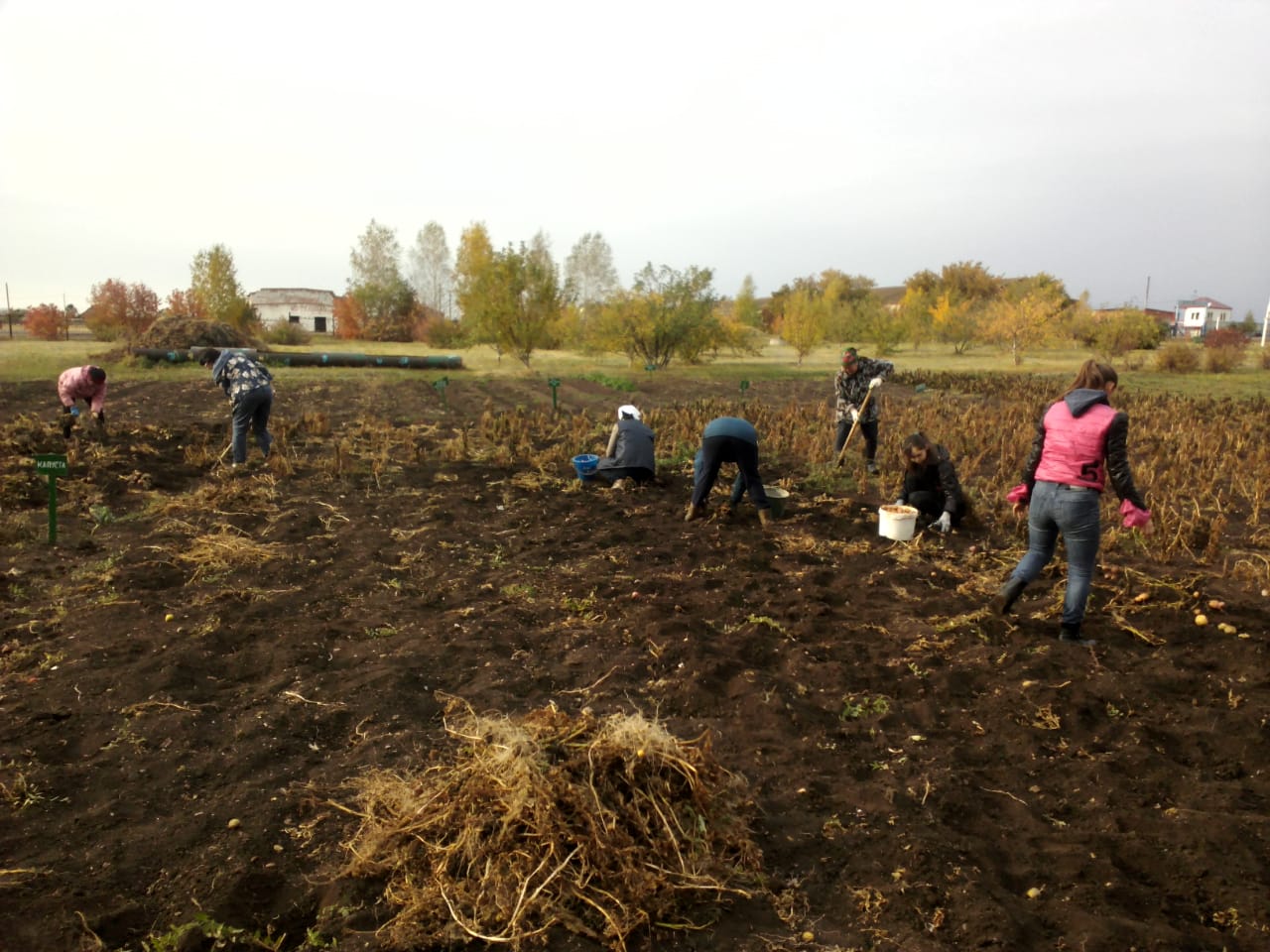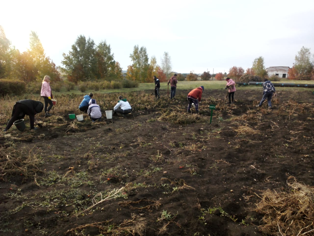 Ребята старших классов и педагоги, вооружившись необходимым инвентарем в порядок школьную территорию.
