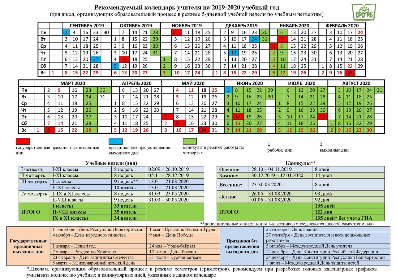 Календарь ученика на 2019-2020 учебный год в Башкирии